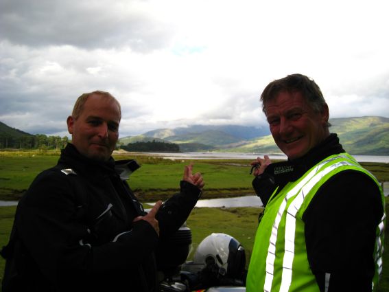 Ja, ja, ganz schön stolz sind die Schotten auf ihr Land. Auch wenn man meistens nicht viel davon sieht. Weil sich viel hinter Wolken versteckt oder in Regenwänden verschwindet. So muss man den Schotten halt glauben, was sie einem erzählen. Jedenfalls weiß Scotsman Peter MacIntyre (www.highlandrider.com) ganz genau, dass sich in dieser Wolke der höchste Berg Schottlands befindet. Und weil der Ben Nevis mit 1344 Metern auch der höchste Berg von Great Britain ist, ist Peter nochmal so stolz darauf. Ich habe ihm das mal geglaubt. Ungesehen.