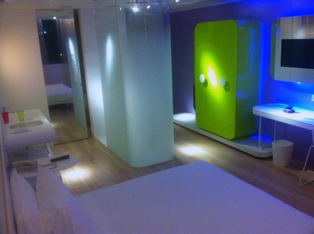 Und mein Zimmer in Milano ist irgendwie rund und bunt. So sind sie halt, the Crazy italian People. Eine absolut designverrückte Butze auf über zwanzig Etagen im trostlosen nichts eines Mailänder Industriegebietes. Welcome to the B4. übrigens: der runde Eisblock in der Mitte ist die vollverglaste Dusche…